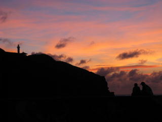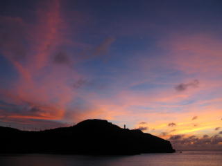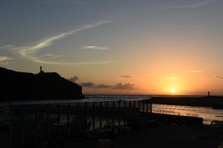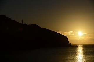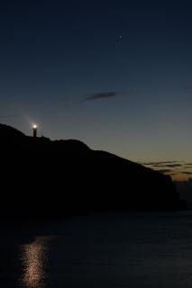 この日は夕焼けがきれいだった。 | 灯台がともる頃に、 宵の明星が輝き始める。 |