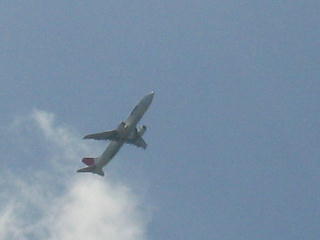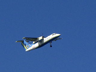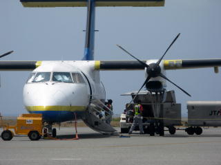 JTA962便が与那国空港を離陸し、 YDS号の上を通って行った。 この光景ももう見られない。 |