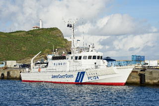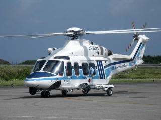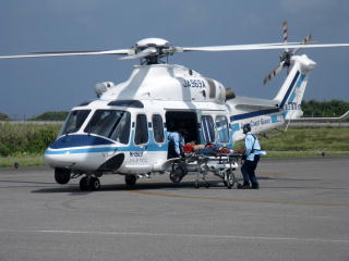 海上保安庁のJA969A「カンムリワシ」 | 救急搬送で出動していた。 頼りになる存在であるとともに、 島では十分な医療が受けられない 場合があるという現実。 |
