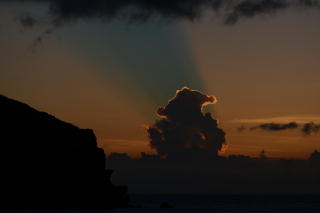 夕日 | 夕日 | 夕焼けの中に、不思議な青いエリア。 |