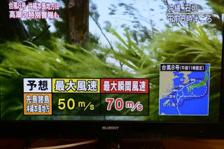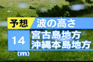 最大瞬間風速の予想が70mですぜ…。 | 波の高さの予想が14mですぜ…。 |