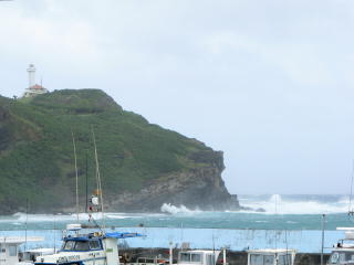 ひとまずは穏やかそのもの。 | ←の次の日の午前中。 風が吹いて、久部良港内も大荒れ。 |