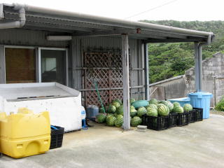 沖縄県道216号「与那国島線」の起点。 | スイカ屋さん。 誰もいなくて買えなかった。 |