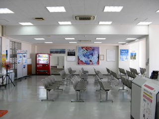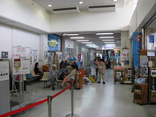 与那国空港の待合室。 小さい空港にしては、 売店がいくつもあったり、食堂もある。 |