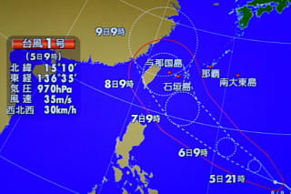 2016(平成28)年の台風1号は、 やいまを直撃する予報。 |