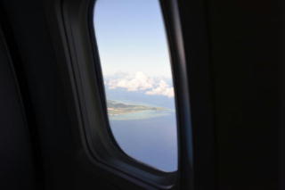 RAC741便が旋回して与那国島が見えてきたときに、その向こうに台湾も見えた! 東から西方向を撮影。 石垣発与那国行きRAC741便から。 |
