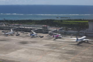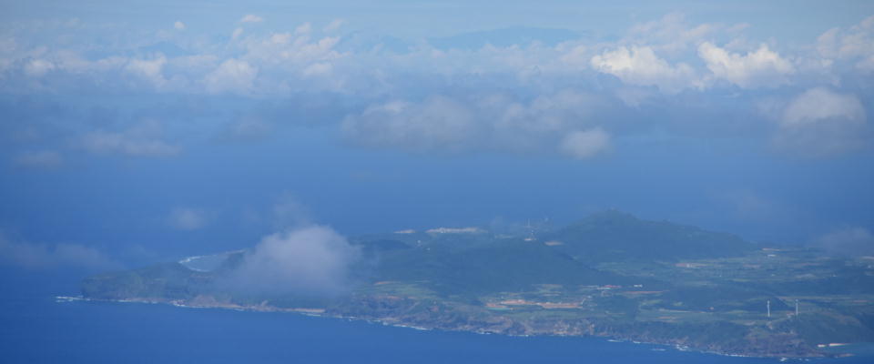 JTA071便から、そろそろ着陸する石垣島の伊原間付近の風景を撮っていたら、 遙か彼方の雲間に島影が見えた 実際に機内から注意深く見ていると、雲ではなく「山」であることが分かる。 与那国島とは直接関係ないが、↓の「与那国島越しに台湾」の写真のツカミとして取り上げたよ。 |