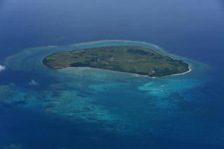 与那国に向けてフライト! | 風の関係で、夏は南に向けて飛び立つ。 その後、与那国島がある西に向けて ぐい〜〜〜んと右に旋回して やいまの島々を眺められる、 まるで遊覧飛行になる。 この写真は、人口より牛の方が多い黒島。 |