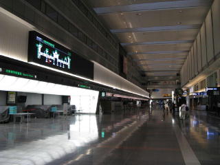 さて、時系列を戻して、 羽田の出発から。 いよいよ2017年のやいま行きが始まる。 長野から「空港便」に乗って、 4:30に羽田空港に着いた。 ターミナルは、一応5時から 開くことになっているが、すんなり入れた。 まだガラガラだが、 これから朝の出発ラッシュになり、 このフロアも観光客やビジネスパーソン などで混む。 |