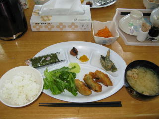 朝メシ。 魚が旨くてごはんが進む。 朝なのにこんなに喰っていいのか…。 |