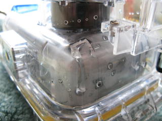 ヤフオク!に出品する前に 与那国島で水中写真を撮るために 古いデジカメとハウジングを 何組か持ってきた。 その中で1本目に持って行った Canon IXY DIGITAL500とWP-DC800 (1行上のカクレクマノミの写真は このセットで撮影したもの。)が、 少し水没してしまった。 ダイビング後、 浸水部を特定させるべくボタンの軸の 水の付き具合などを細かく見てみたが 特定できなかったので、 ひとまず、もう1つ持ってきてあった WP-DC800に交換して、 次の日のダイビングに持って行ったら、 問題なく使えた。 カメラには特に影響がなかったのが 助かった。 |