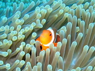 よく「ニモ」と言われるカクレクマノミ。 厳密には違う種類。 |