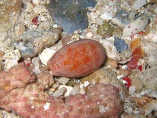 何となくなまめかしい色の ゾウゲイロウミウシ。 右がアタマだよ。 |