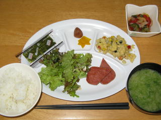 結局、台風は抜けて、 ダイビングは問題なくできた。 飛行機も問題なく飛んだ。 朝メシも旨い。 ポークがあるとコメが進むさ〜。 |