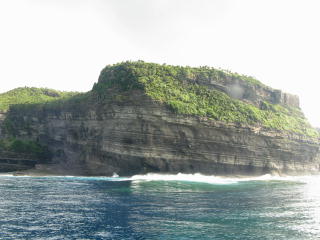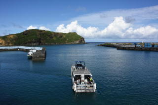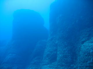空は、今イチスッキリしないけど、 北風(翌日の気象庁の記録では西風。) になったお陰で、島の南側の 「海底遺跡」に行くことができた。 |