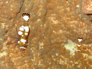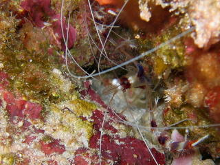 昼メシ後の2本目は、のんびり系。 岩の間にオトヒメエビ。 穴に斜めにへばりついている。 |