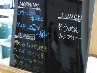 さあ、与那国島でのダイビング最終日。 お献立のロウニンアジやタコの絵が うまいね。 |