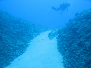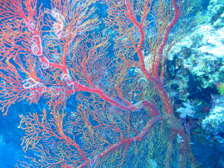 年代物のウミウチワ。 俺が与那国島で潜り始めた頃から あったような気がする。 海流などでよく折れないもんだ。 |