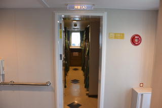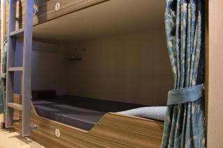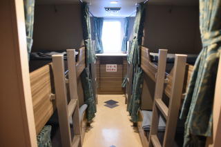 寝台席入口。 | 寝台席。 合宿部屋というか、 ドミトリーみたい。 追加料金は、なし。 空いていれば好きに利用できる。 この日は俺以外利用者なし。 |