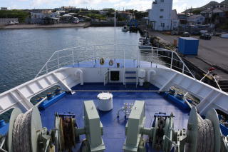 エレベーターもある。 | 今日の1本目に出て行くダイバーが、 フェリーにいる俺に手を振ってくれた。 涙があふれてくる。 今日も楽しく潜ってね。 また来年くるよ〜。 |