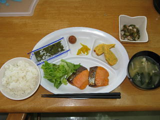 YDSの、ある日の朝メシ。 いつも、朝はとても軽いが、 この日は酒の粕漬け焼きが2切れも 付いていて、珍しく(失礼)豪華だった。 2016/07に訪れたときは、 箸がうめーしじゃなくなっていた。 寂しい。 |