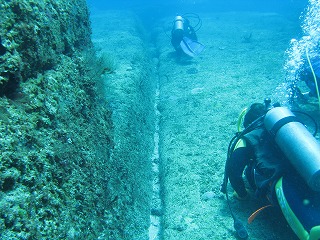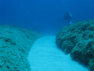ウミウシみたいな岩。 | 光の宮殿。 | ドロップオフをゆらゆらと。 | |||