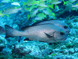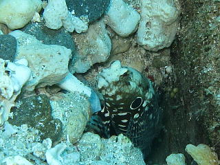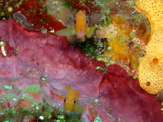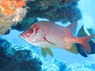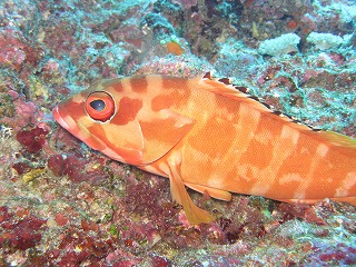ヨスジフエダイ | でっかいマダラハタ。 | キンギョハナダイ。 ちょうど正面を向いて口を少し開けていて、 まるでアイシャドウとルージュを引いた 女の人みたい。 ピントが合っていなかったのが残念。 正面からピントを合わせて撮るのが 今後の宿題になりました。 |