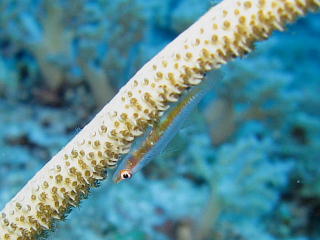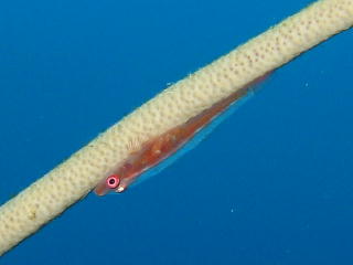 ハナオコゼ(yg)? 大物狙いで与那国ブルーの中を 中層移動しているときに見つけた。 あんな広い大海でこんな1cmにも満たない 個体に出会うなんて不思議でしかたない。 単に偶然といってしまえば それまでだけど…。 |