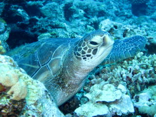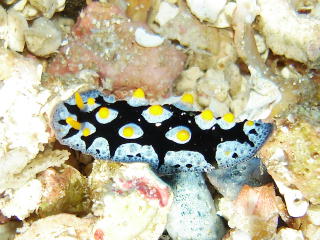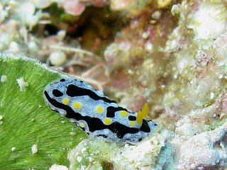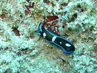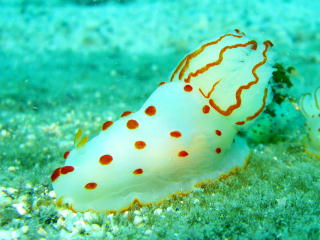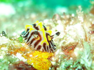 ウミガメ | フリエリイボウミウシ。 ハクバ「DSS-02」(スレイブストロボ)を 併用しての撮影。 使い方がなかなか難しいが、 これはうまく撮れた。 |
