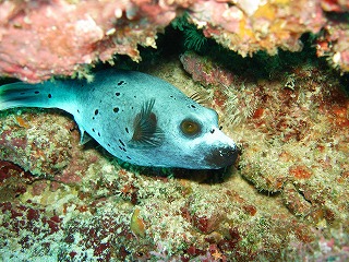 キンギョハナダイ | すっとぼけた顔のコクテンフグ。 | ハナミノカサゴ | |||