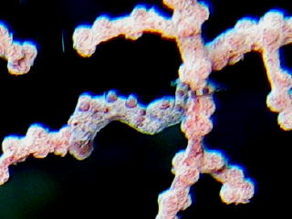 ジャパニーズピグミーシーホース。 1cmないぐらい。 スレイブストロボが活躍しすぎて、 白飛びしてしまった。 いくらデジタルでも、白飛びしてしまうと 修正は困難。 |