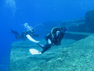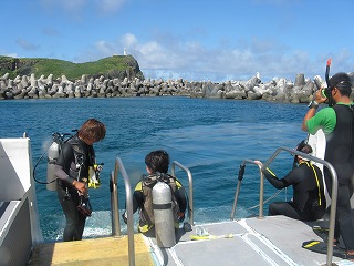 体験ダイビングさんと一緒に、 珍しく久部良港内のテトラポイントで潜る。 |