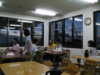 18時からの晩メシも一段落し、 グダグダと呑みモード。 右上の時計は正確な時刻を刻んでいる。 現在20時。まだ外は明るい。 7月初旬は1年で1番日没時刻が遅く、 海上保安庁のサイトでの計算では、 19:41。 |