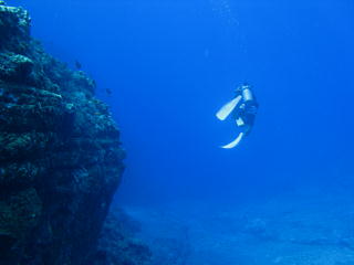-20m。 西崎で流されている最中。 ちょっと濁っているけど、 気持ちのいい与那国ブルー。 |